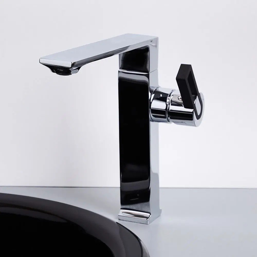 - خلاط مغسلة صيني مرتفع مسكة تريديكس لادر 310085 يتميز بتصميم عصري أنيق يناسب الحمامات الحديثة بلمسة نهائية من الكروم اللامع.